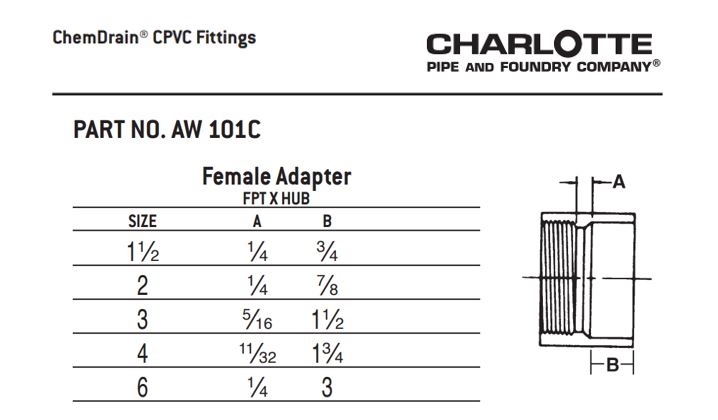 6" Female Adapter FIP x Hub CPVC Chemical Drainage Fitting