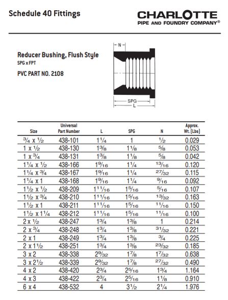 1-1/2" x 3/4" PVC SCH40 Bushing - Spigot x FPT