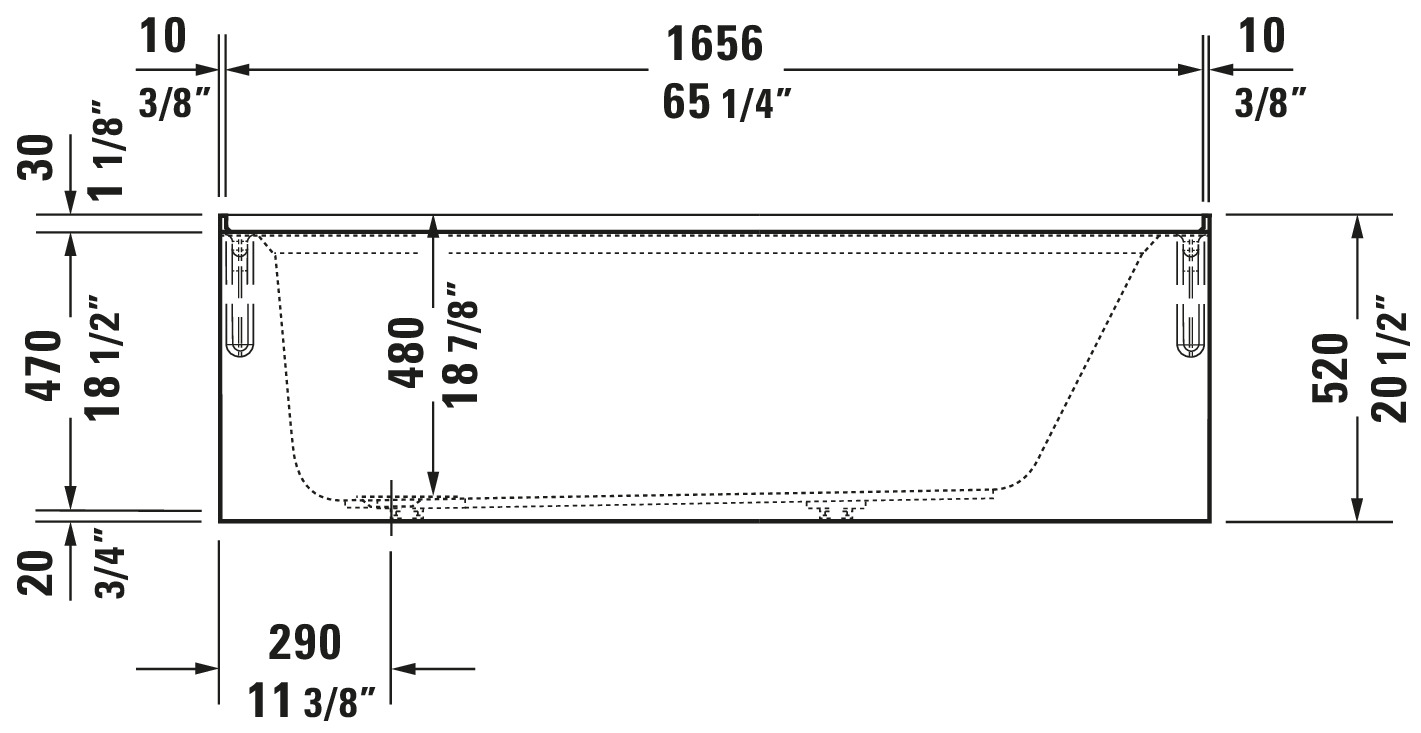 Duravit Architec 66" x 32" Rectangular Alcove Bathtub in White Acrylic with Left Drain, Drain Sold Separately, Pack of 8