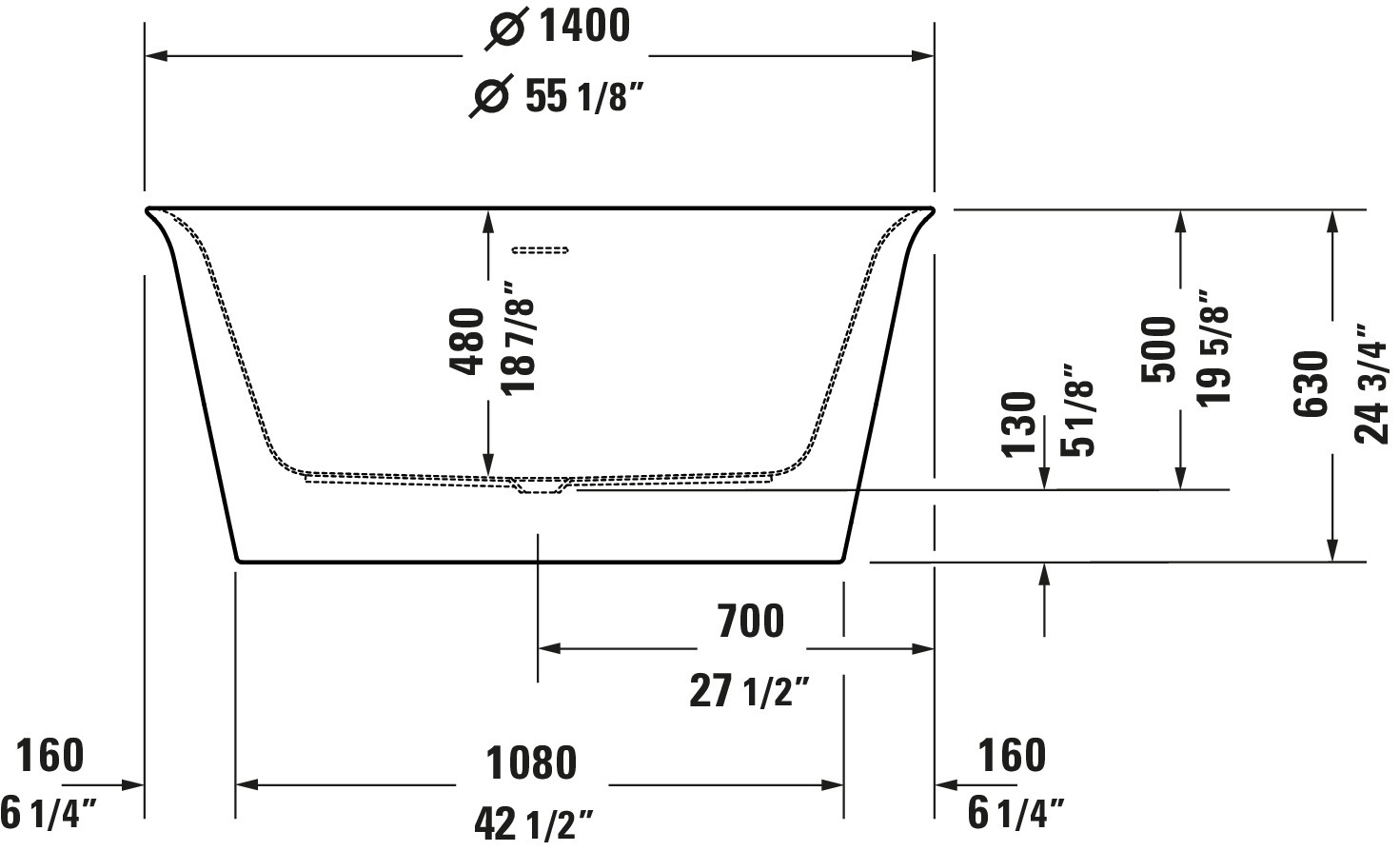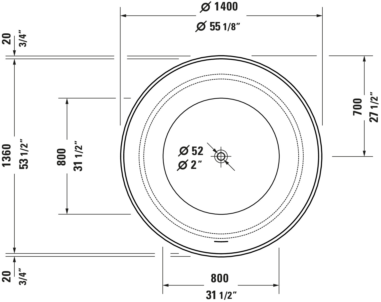 Duravit White Tulip 55 1/8" x 55 1/8" Round Freestanding Bathtub in White Acrylic with Center Drain, Drain Included