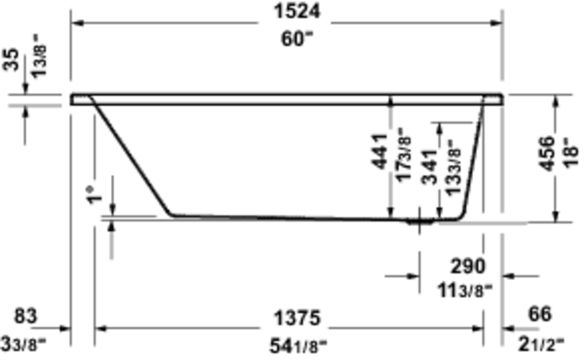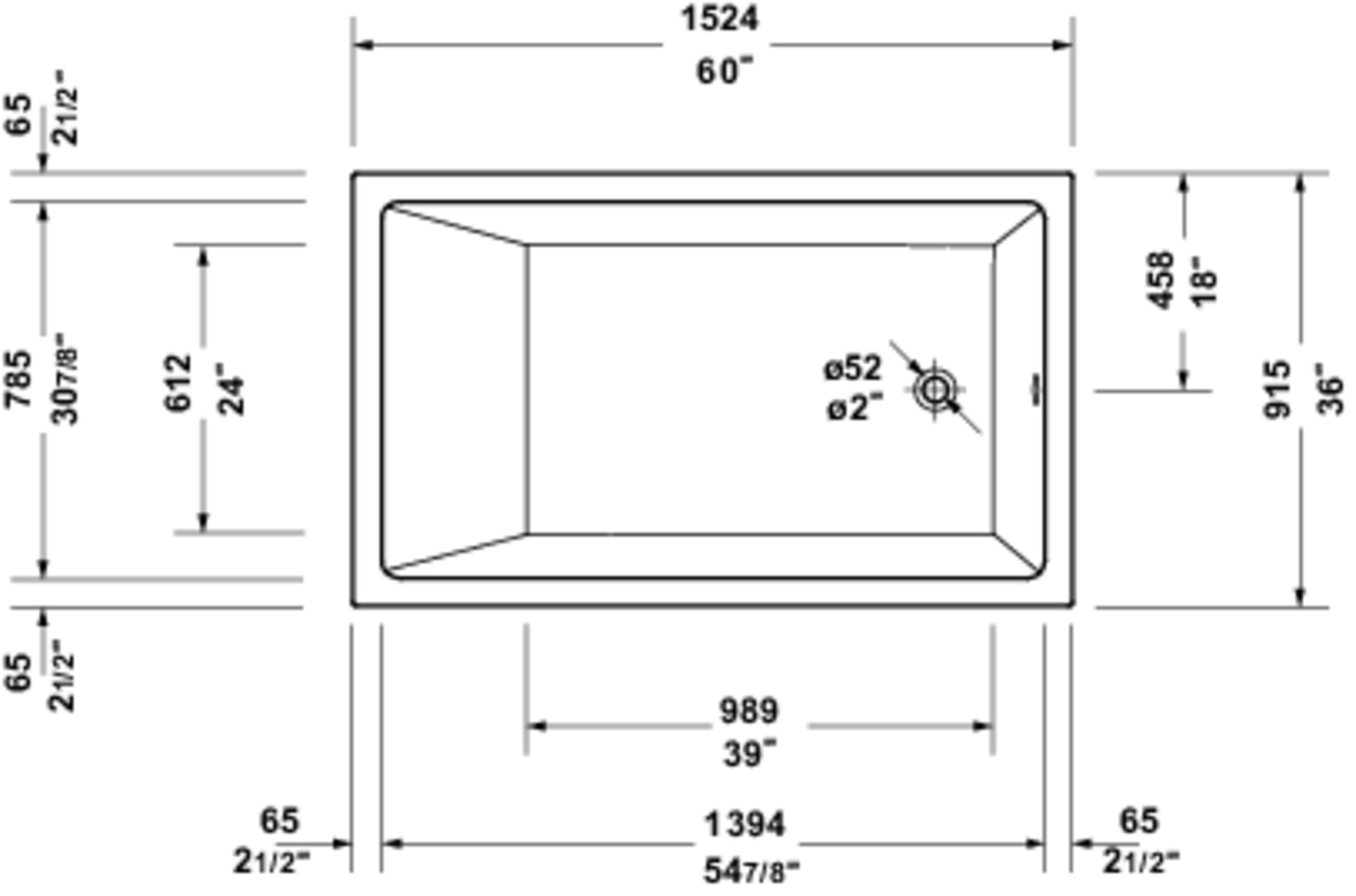 Duravit No.1 60" x 36" Rectangular Drop In Bathtub in White Acrylic with Reversible Drain, Drain Sold Separately