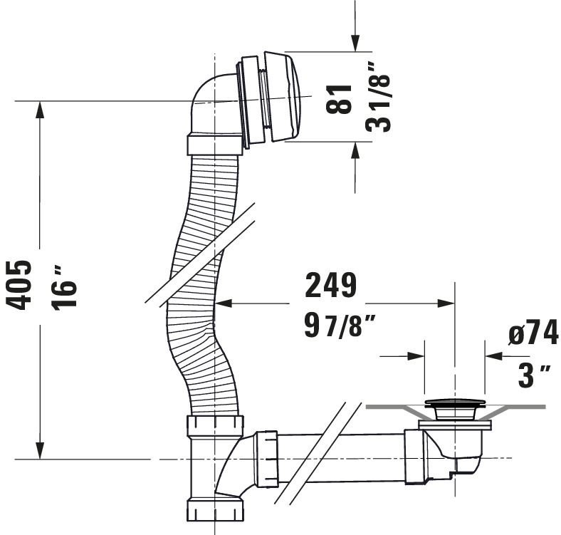 Duravit PVC Toe-Tap Bathtub Drain in Brushed Bronze