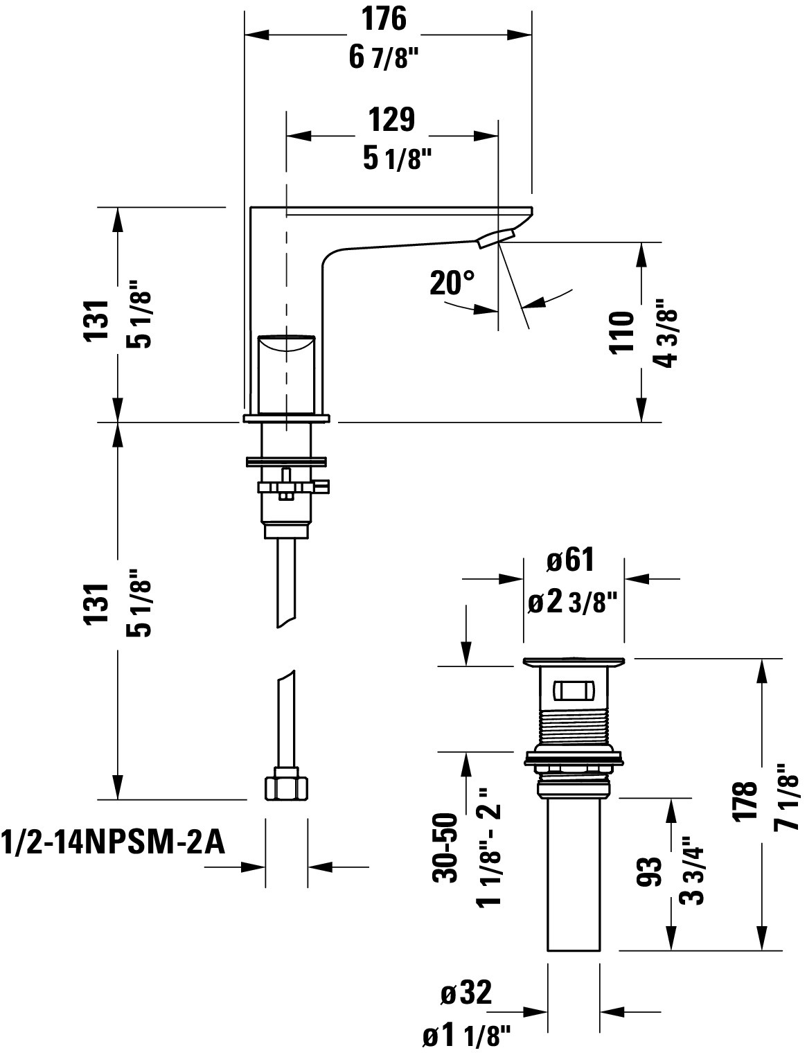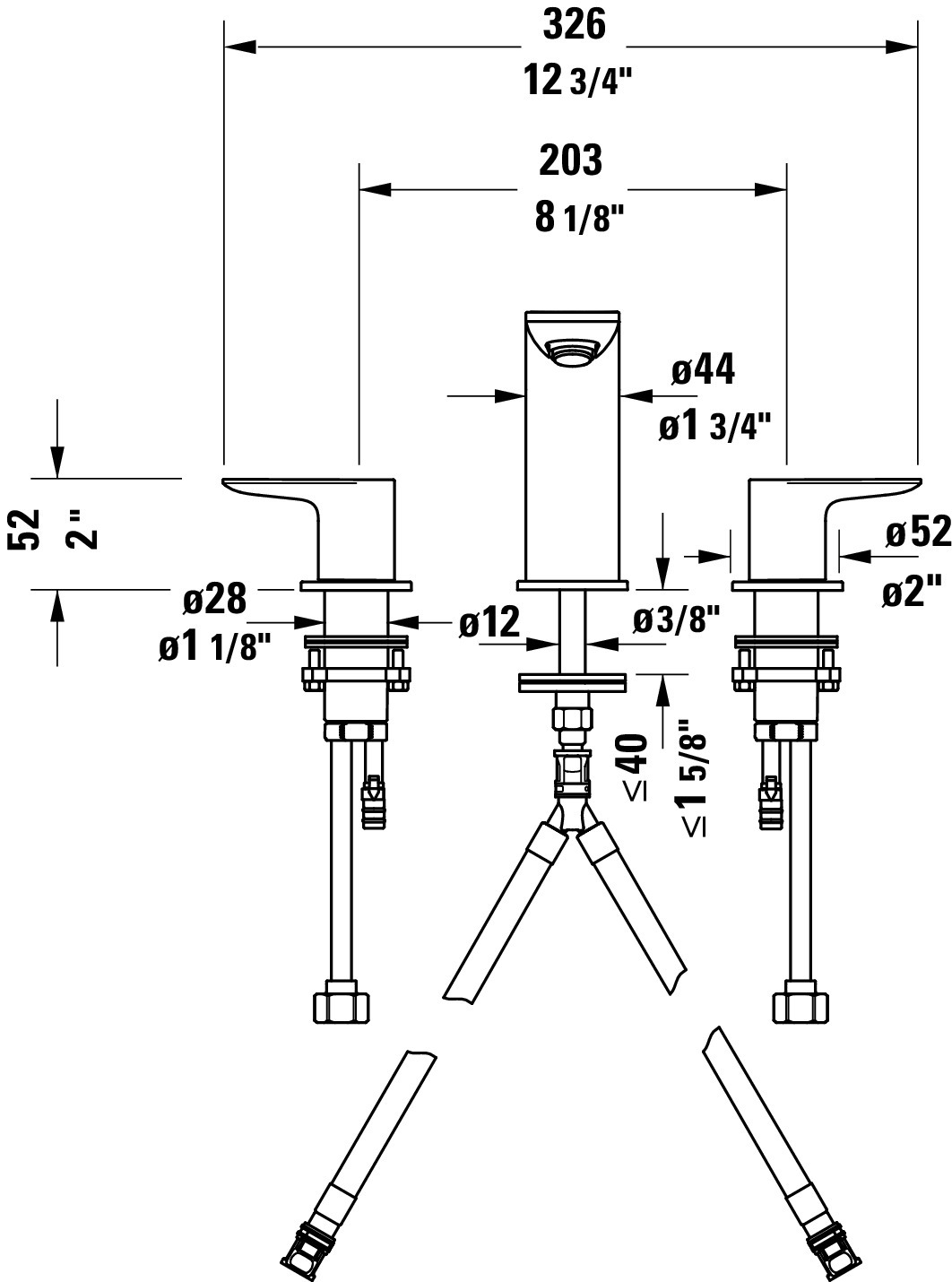 Duravit No.1 5 1/8" Two Handle Widespread Bathroom Sink Faucet in Brushed Nickel, Drain Included