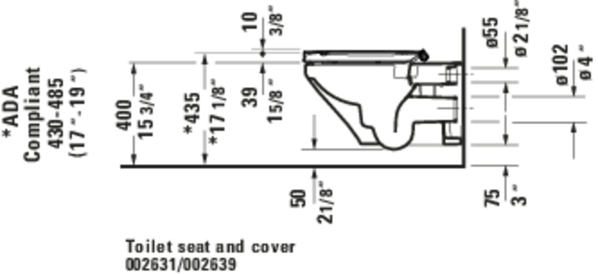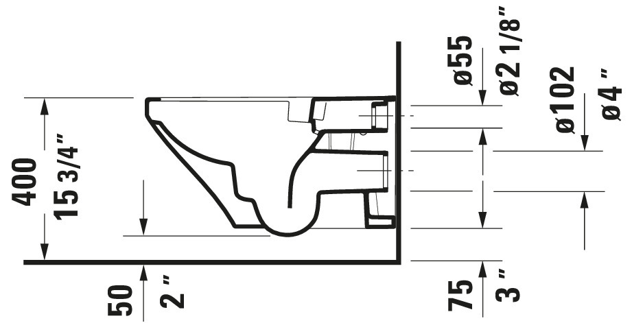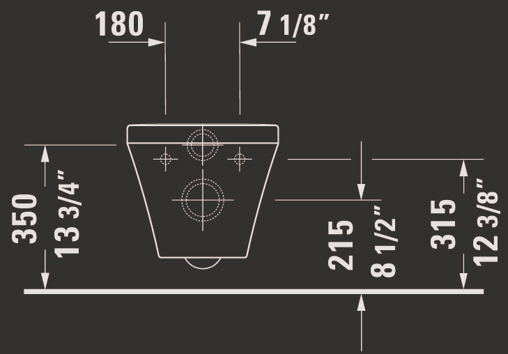 Duravit DuraStyle 1.6/0.8 GPF Dual Flush Rimless ADA Compliant Elongated Wall Mounted Toilet in White - Seat, Actuator, and In-Wall Tank and Carrier Sold Separately