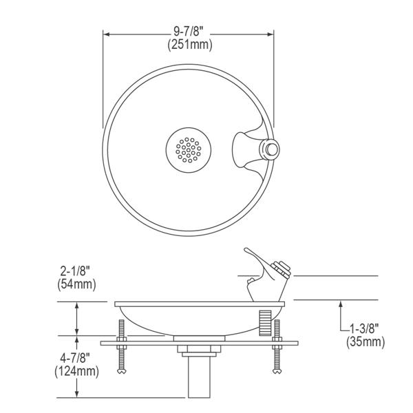 Chrome-plated push-button bubbler is attractive and easy to clean.
