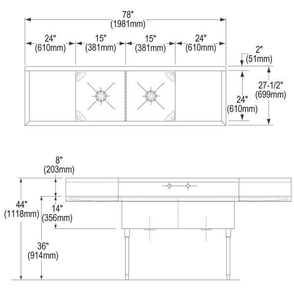Elkay Sturdibilt Stainless Steel 78" 27-1/2" x 14" Floor Mount Double Compartment Scullery Sink with Drainboard