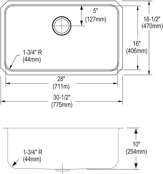 • DRAIN OPENING: Sink drain opening measures 3-1/2".