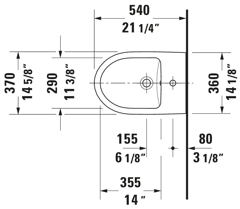 Duravit No.1 Single Hole Horizontal Spray Wall Mount Bidet in White