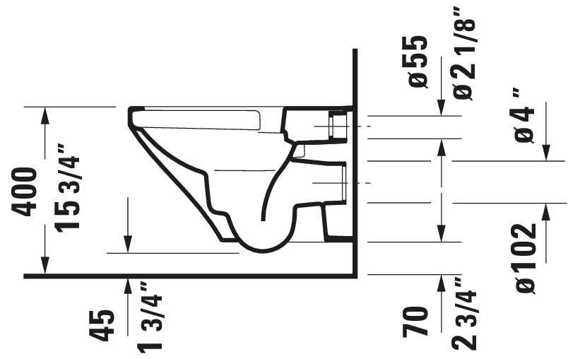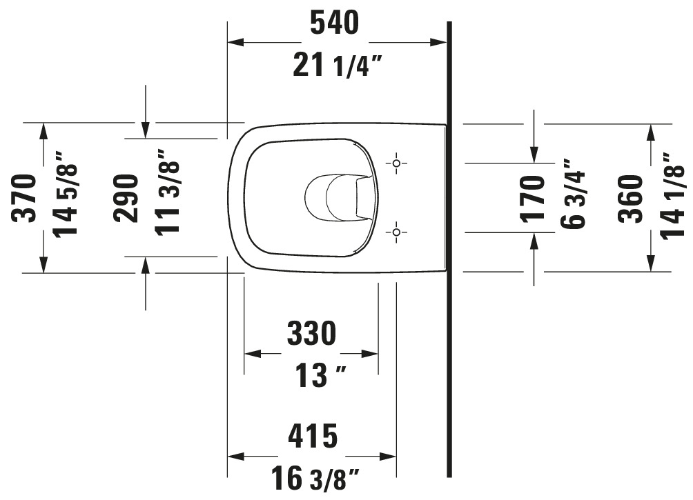 Duravit DuraStyle 1.6/0.8 GPF Dual Flush Rimless ADA Compliant Round Wall Mounted Toilet in White with HygieneGlaze - Seat, Actuator, and In-Wall Tank and Carrier Sold Separately