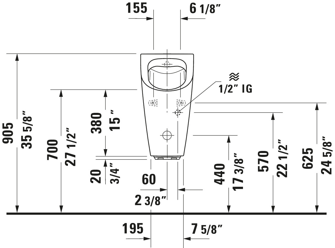 Duravit ME by Starck 0.13 GPF Single Flush Rimless ADA Compliant Urinal in White