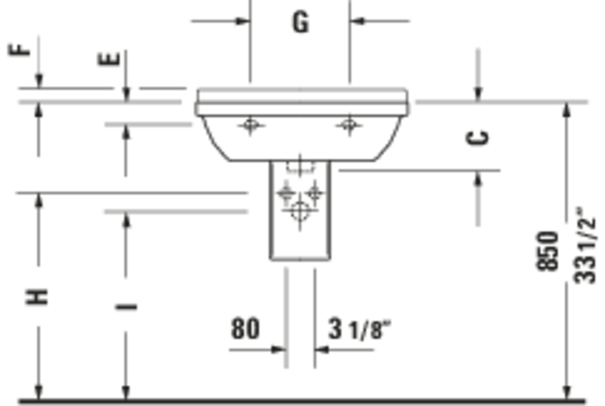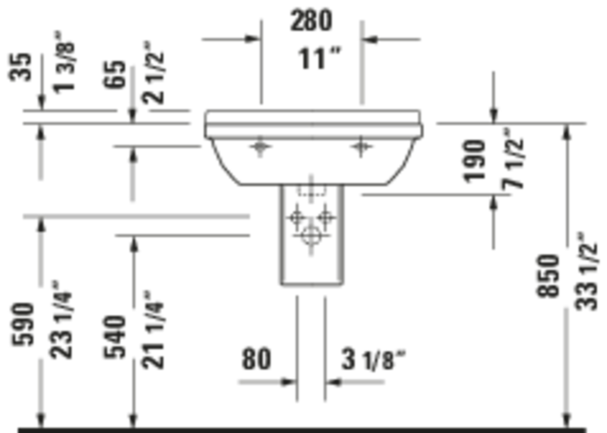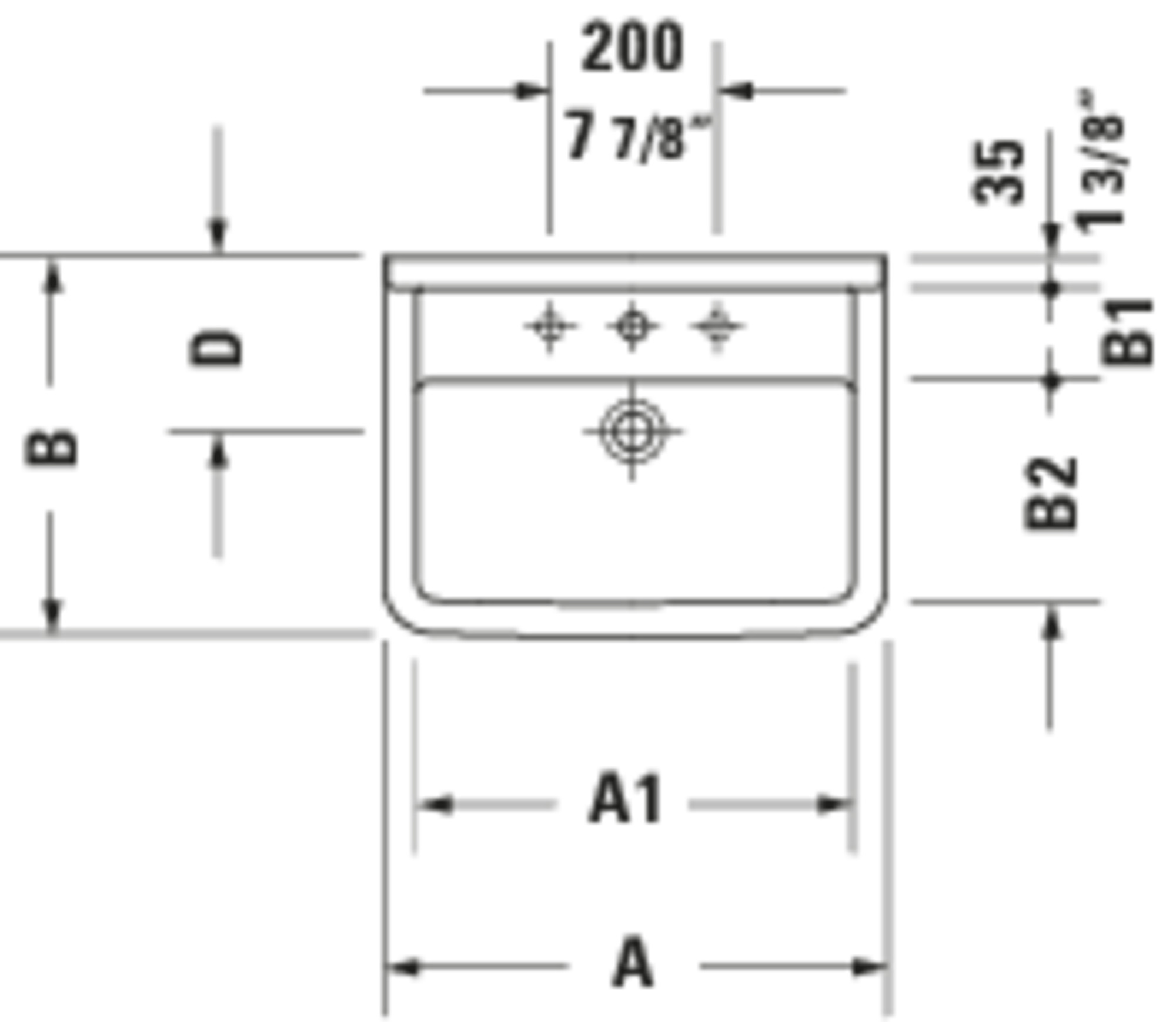 Duravit Starck 3 23 5/8" Rectangular Wall Mounted Sink in White with Widespread Faucet Holes and with Overflow
