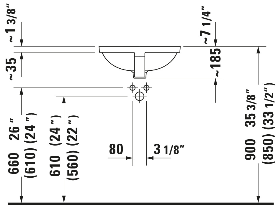 Duravit Starck 3 18 1/4" Rectangular Undermount Sink in White with Overflow