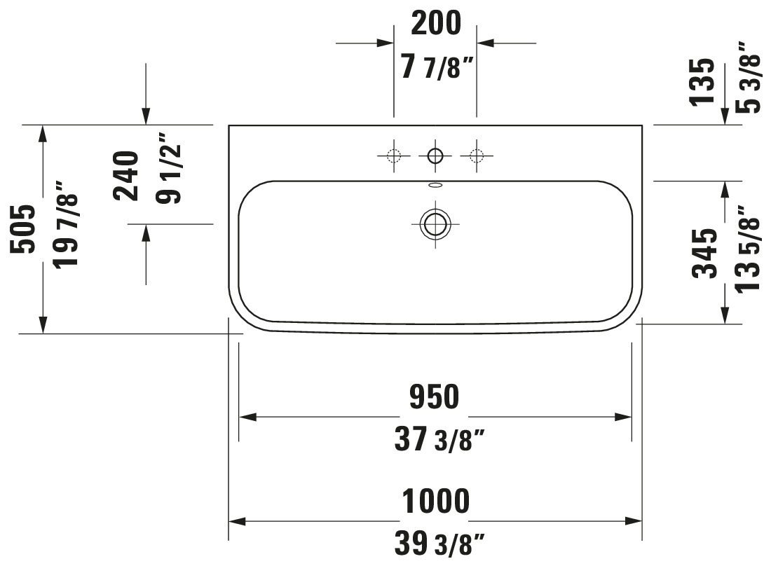 Duravit Happy D.2 39 3/8" Rectangular Wall Mounted Sink in White with Single Faucet Hole and with Overflow