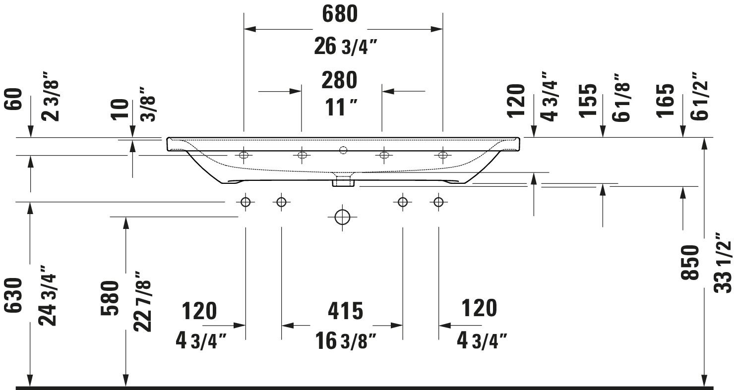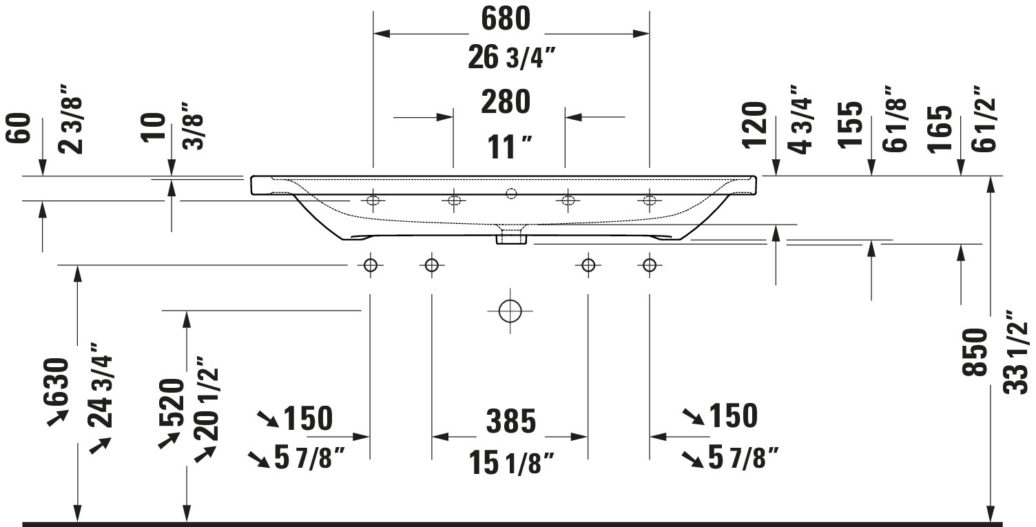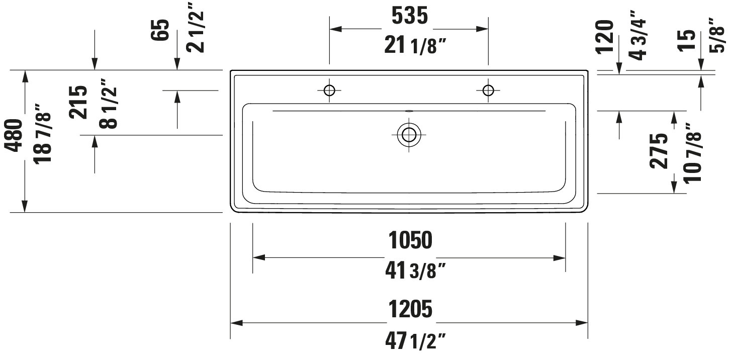 Duravit D-Neo 47 1/2" Rectangular Wall Mounted Sink in White with Two Sets of Single Faucet Holes and with Overflow