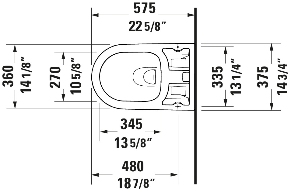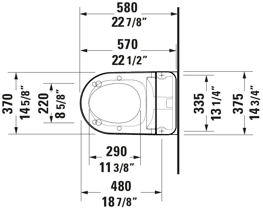 Duravit D-Neo 1.28/0.8 GPF Dual Flush Rimless Round Wall Mounted Toilet in White with HygieneGlaze