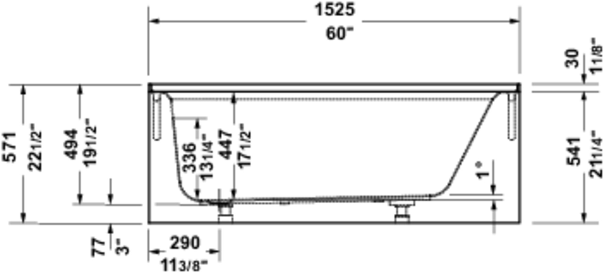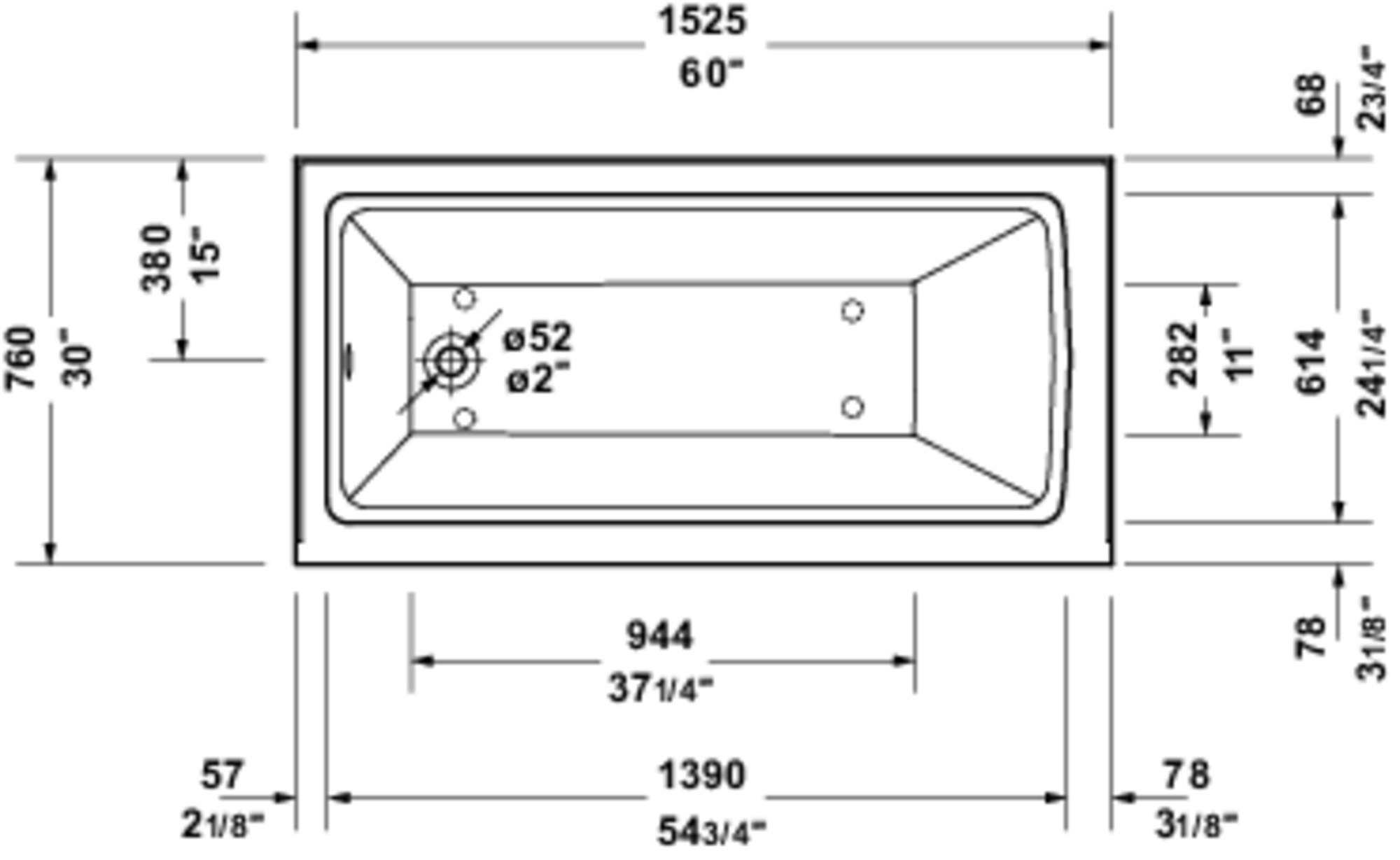Duravit Architec 60" x 30" Rectangular Alcove Bathtub in White Acrylic with Left Drain, Above Floor Rough, Drain Sold Separately, Pack of 8