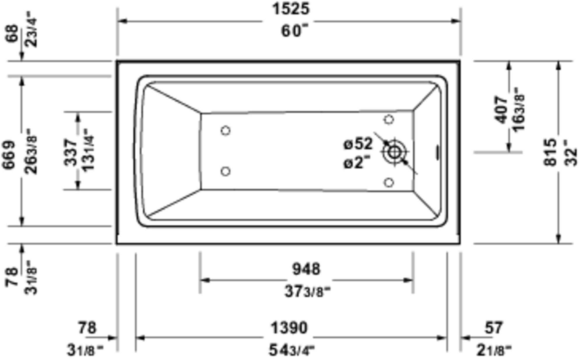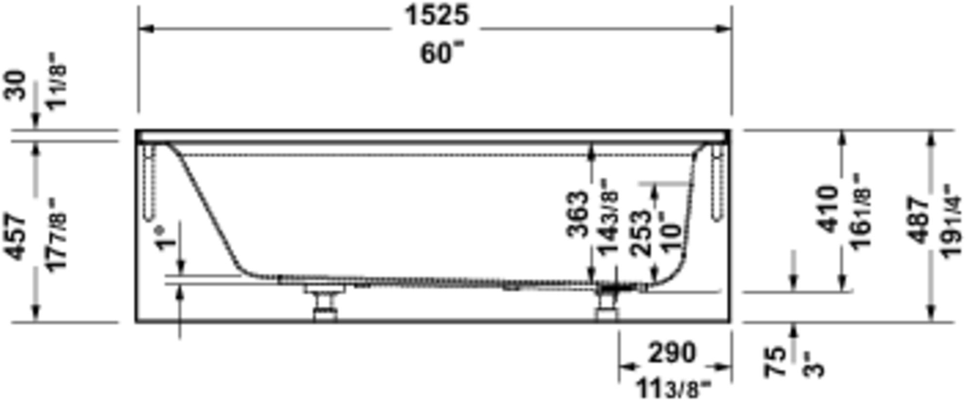 Duravit Architec 60" x 32" Rectangular Alcove Bathtub in White Acrylic with Left Drain, Above Floor Rough, Drain Sold Separately, ADA Compliant, Pack of 8