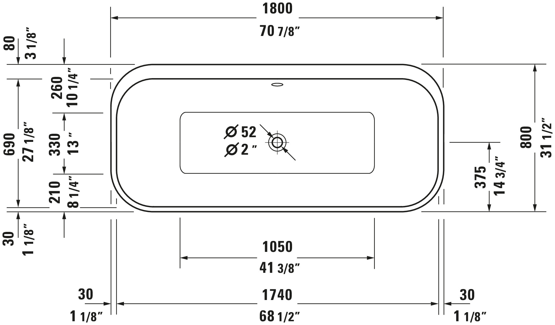 Duravit Happy D.2 70 7/8" x 31 1/2" Rectangular Freestanding Bathtub in White Acrylic with Center Drain, Drain Included