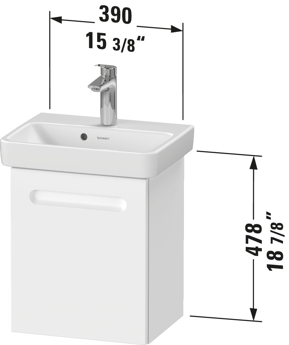 Duravit No.1 15 3/8" Wall Mount One Door Single Vanity Cabinet in Matte White, Sink Sold Separately